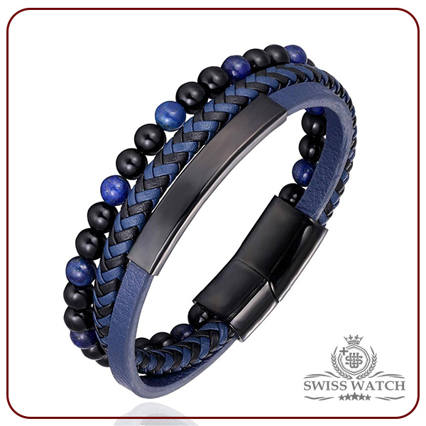 استفاده از سنگهای طبیعی اونیکس مشکی و سرمه ای در طراحی این دستبند، علاوه بر زیبایی ظاهری، انرژی و حس تمرکز و اعتمادبهنفس را به شما منتقل میکند. -