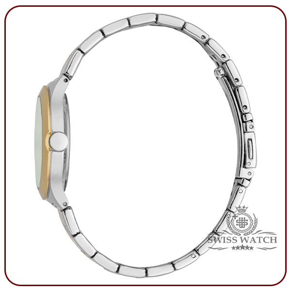 بند ساعت زنانه اسپریت مدل ES1L264M1095 نیز از جنس فلزی با رنگ طلایی و نقره ای است که با بدنه ساعت هماهنگ است. بند فلزی این ساعت به‌خوبی روی مچ دست قرار می‌گیرد و علاوه بر راحتی، استحکام بالایی دارد. این بند به گونه‌ای طراحی شده که در طول زمان کیفیت و زیبایی خود را حفظ کند و همچنان جذابیت اولیه را داشته باشد.