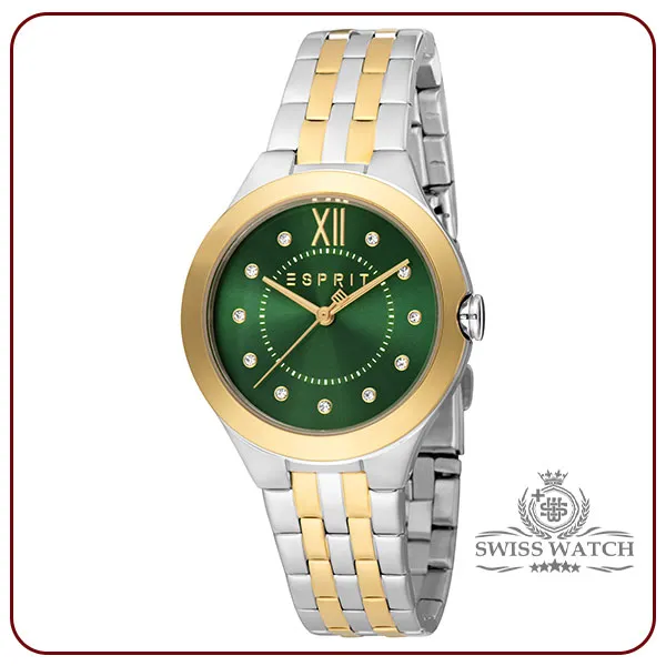 ساعت زنانه اسپریت مدل ES1L264M1095 با بدنه‌ای از جنس استیل ضدزنگ و رنگ طلایی، نقره ای و سبز طراحی شده که جلوه‌ای خاص و لوکس به آن بخشیده است. بند فلزی این ساعت نیز با رنگ سبز همخوانی دارد و به‌گونه‌ای طراحی شده که راحتی و زیبایی را برای کاربر فراهم می‌کند. صفحه این ساعت با ظاهری مینیمال و ساده، دارای شاخص‌های زمانی باریک و ظریف است که با رنگ بند و بدنه هماهنگی کامل دارد.