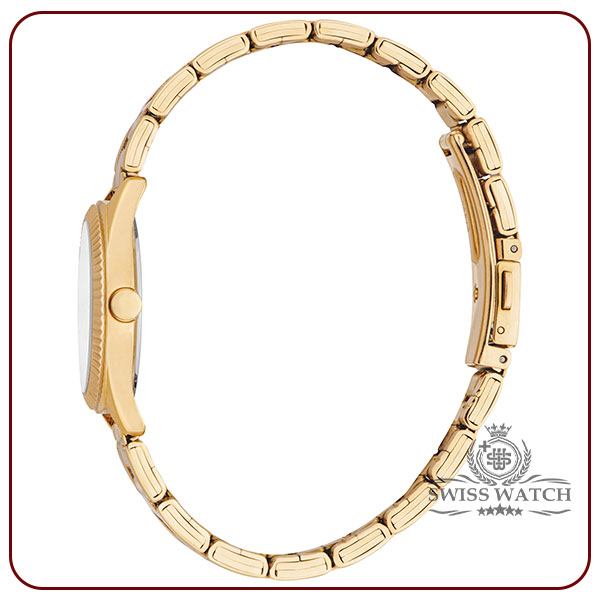 بند ساعت زنانه اسپریت مدل ES1L419M0025 نیز از جنس استیل ضد زنگ با رنگ طلایی است که با بدنه ساعت هماهنگی کاملی دارد. این بند نه‌تنها زیبایی ساعت را تکمیل می‌کند، بلکه مقاومت و دوام بالایی نیز دارد. بند استیل طلایی‌رنگ، به‌خوبی با مچ دست هماهنگ می‌شود و احساس راحتی را در طول روز به کاربر می‌دهد. همچنین، این بند به دلیل کیفیت بالا، در برابر سایش و تغییر رنگ مقاوم است.