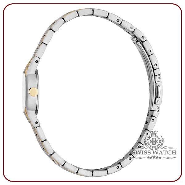 بند استیل نقرهای و طلایی این ساعت با طراحی زیبا و مینیمال خود، راحتی و سبکی خاصی را به مچ دست شما میبخشد. عرض بند 12 میلیمتری آن با قفل کلیپسی دو طرفه، امنیت و سهولت در استفاده را فراهم میکند و به شما اطمینان میدهد که ساعت به خوبی روی مچ دست شما قرار میگیرد.