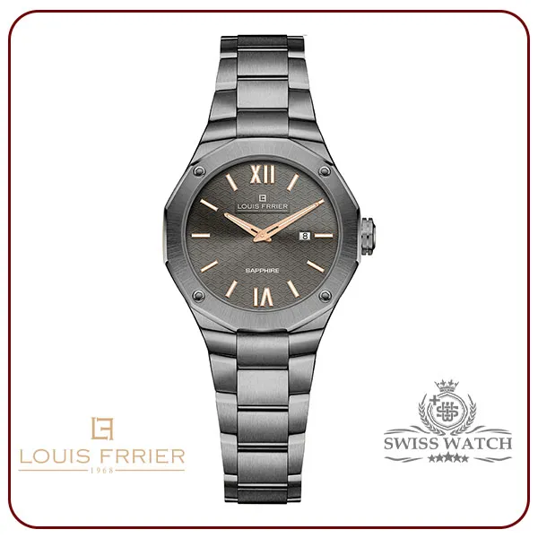 قاب چندضلعی این ساعت، یکی از ویژگیهای منحصربهفرد آن است. این طراحی خاص، به ساعت ظاهری متفاوت و مدرن بخشیده است و در عین حال، حفظ کننده استایل کلاسیک و اصالت ساعتهای لوئیس فریر است. قطر 32 میلیمتری قاب، اندازهای ایدهآل برای دستهای ظریف زنانه است و به خوبی روی مچ قرار میگیرد.