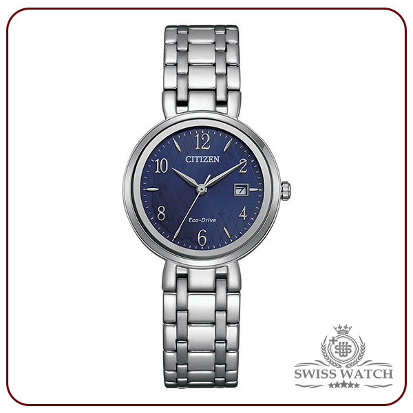 ساعت مچی زنانه Citizen EW2690-81L با طراحی فولاستیل نقرهای، صفحه آبی متالیک و فناوری انحصاری Eco-Drive، ترکیبی از زیبایی، دقت و ماندگاری است.