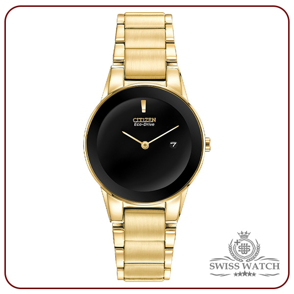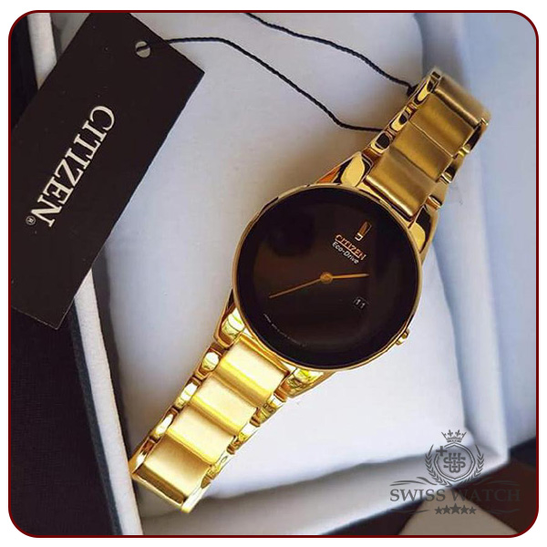 ساعت مچی سیتی‌زن مدل GA1052-55E یکی از زیباترین مدل‌های کلاسیک برند ژاپنی Citizen است که با طراحی ظریف و چشم‌نواز خود، ظرافت و مدرنیته را به‌طور هم‌زمان در یک قاب ارائه می‌دهد. این ساعت با بدنه و بند تمام استیل طلایی رنگ و صفحه‌ی مشکی ساده اما درخشان طراحی شده تا جلوه‌ای لوکس، زنانه و کاملاً هماهنگ با استایل‌های رسمی و روزمره داشته باشد.