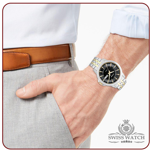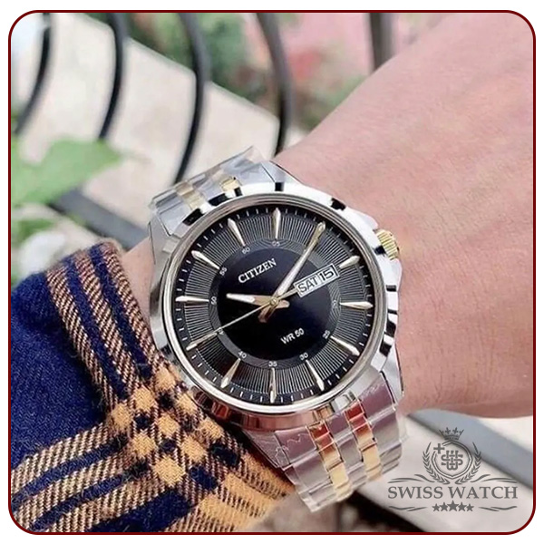 برند Citizen با تلفیق زیبایی و عملکرد دقیق، این مدل را به گونه‌ای طراحی کرده که هم در موقعیت‌های رسمی و هم در استفاده‌ی روزمره جلوه‌ای چشم‌گیر داشته باشد. تضاد رنگ طلایی عقربه‌ها با پس‌زمینه‌ی مشکی مات، ظاهری لوکس و خوانایی بالا را برای این ساعت فراهم کرده است.