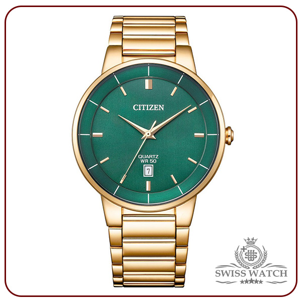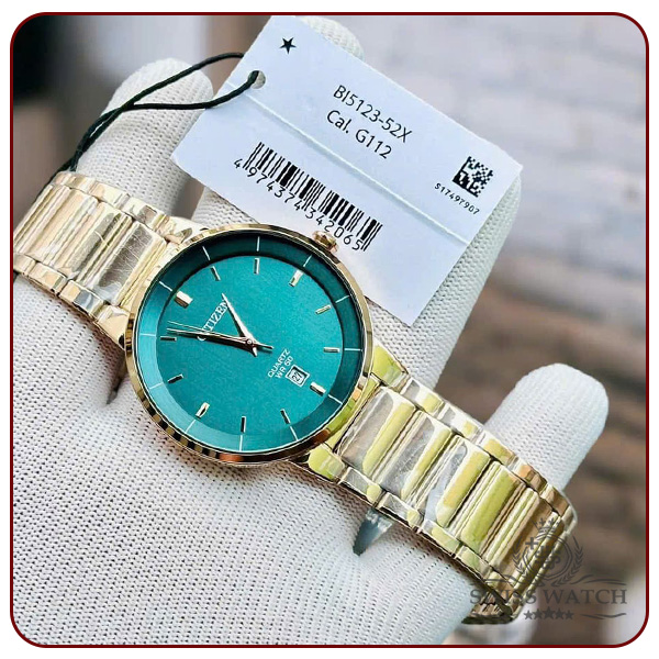 ساعت مچی مردانه Citizen BI5123-52X با طراحی رنگ طلایی، صفحه سبز لوکس و موتور دقیق ژاپنی، انتخابی بینقص برای آقایانی است که به دنبال ترکیب ظرافت، اصالت و جذابیت هستند.