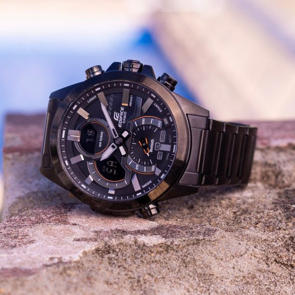 ویژگیهای اختصاصی ساعت کاسیو ادیفایس مدل ECB-30DC-1ADF بند و بدنه یوناندود مشکی | مناسب مسابقات ماشین سواری | بلوتوث | قابلیت اتصال اپلیکیشن: تنظیم خودکار زمان / تنظیم آسان ساعت / تقریباً 300 شهر به وقت جهانی / کرنومتر انتقال داده / زمان و مکان / تلفنیاب | زمان جهانی 38منطقه زمانی (38شهر + ساعت جهانی هماهنگ) / نمایش کد شهر / نمایش نام شهر | روشن/خاموش شدن در تابستان / تغییر ساعت خودکار تابستانی (DST) / تعویض شهر خانه/زمان جهانی | کرنومتر 1/1000 ثانیه ظرفیت اندازهگیری: 00’00”000~59’59”999 (برای 60 دقیقه اول) 1:00’00”0~23:59’59”9 (پس از 60 دقیقه ) واحد اندازهگیری: 1/1000 ثانیه (برای 60 دقیقه اول) 1/10 ثانیه (پس از 60 دقیقه) حالتهای اندازهگیری: زمان سپری شده / زمان دور / تقسیم | 5 آلارم روزانه (با بیپر پیشرفت) | تایمر شمارش معکوس واحد اندازهگیری: 1ثانیه محدوده شمارش معکوس: 60 دقیقه محدوده تنظیم زمان شروع شمارش معکوس: 1ثانیه تا 60دقیقه (افزایش 1ثانیه و افزایش 1 دقیقه) سایر موارد: بیپر پیشرفت | نور LED دوتایی برای صورت (سوپر روشنایی / مدت زمان روشنایی قابل انتخاب (1.5ثانیه یا 3ثانیه) / نور پس زمینه LED برای صفحه نمایش دیجیتال (سوپر روشنایی / مدت زمان روشنایی قابل انتخاب (1.5 ثانیه یا 3 ثانیه) پس درخشش) / LED: سفید | تقویم خودکار کامل (تا سال 2099) | ویژگی تغییر عقربه (عقربهها از مسیر خارج میشوند تا دیدی بدون مانع از محتویات نمایشگر دیجیتال ایجاد کنند.) | حالت هواپیما | فرمت 12/24 ساعته | زمانبندی بیپر روشن/خاموش | تعویض تاریخ/ماه نمایشگر | نمایش روز (روزهای هفته قابل انتخاب به شش زبان) | زمانسنجی منظم: آنالوگ: 2 عقربه (ساعت / دقیقه (هر 20ثانیه حرکت عقربه)) 1شماره گیری (مرتبط با هر حالت) دیجیتال: ساعت / دقیقه / ثانیه / بعدازظهر / ماه / تاریخ / روز | تقریبا عمر باتری: 2 سال در CR2016