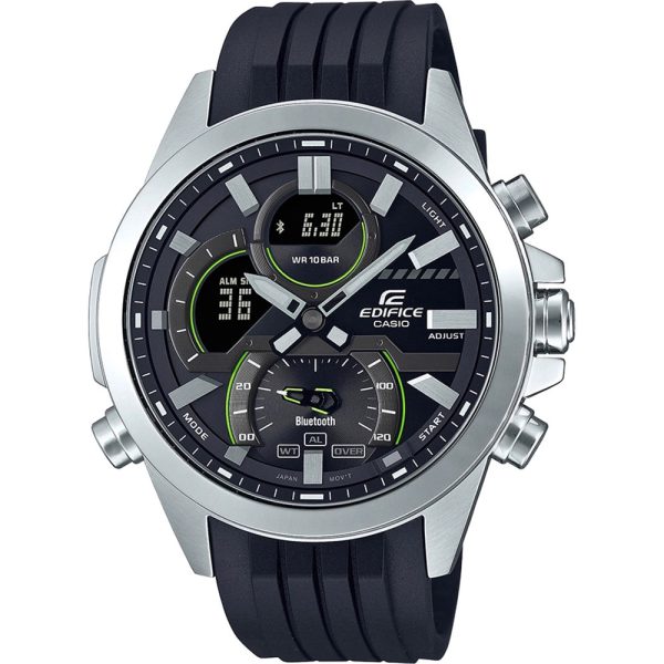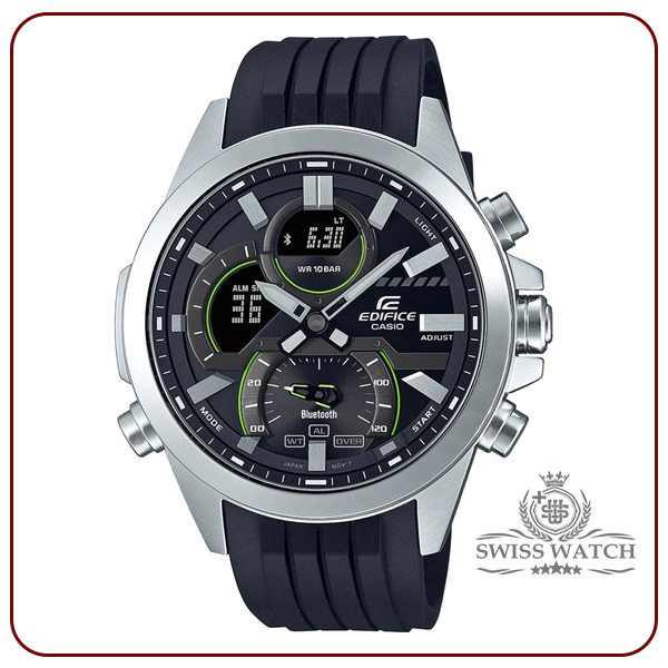ویژگیهای اختصاصی ساعت کاسیو ادیفایس مدل ECB-30P-1ADF مناسب مسابقات ماشین سواری | بلوتوث | قابلیت اتصال اپلیکیشن: تنظیم خودکار زمان / تنظیم آسان ساعت / تقریباً 300 شهر به وقت جهانی / کرنومتر انتقال داده / زمان و مکان / تلفنیاب | زمان جهانی 38منطقه زمانی (38شهر + ساعت جهانی هماهنگ) / نمایش کد شهر / نمایش نام شهر | روشن/خاموش شدن در تابستان / تغییر ساعت خودکار تابستانی (DST) / تعویض شهر خانه/زمان جهانی | کرنومتر 1/1000 ثانیه ظرفیت اندازهگیری: 00’00”000~59’59”999 (برای 60 دقیقه اول) 1:00’00”0~23:59’59”9 (پس از 60 دقیقه ) واحد اندازهگیری: 1/1000 ثانیه (برای 60 دقیقه اول) 1/10 ثانیه (پس از 60 دقیقه) حالتهای اندازهگیری: زمان سپری شده / زمان دور / تقسیم | 5 آلارم روزانه (با بیپر پیشرفت) | تایمر شمارش معکوس واحد اندازهگیری: 1ثانیه محدوده شمارش معکوس: 60 دقیقه محدوده تنظیم زمان شروع شمارش معکوس: 1ثانیه تا 60دقیقه (افزایش 1ثانیه و افزایش 1 دقیقه) سایر موارد: بیپر پیشرفت | نور LED دوتایی برای صورت (سوپر روشنایی / مدت زمان روشنایی قابل انتخاب (1.5ثانیه یا 3ثانیه) / نور پس زمینه LED برای صفحه نمایش دیجیتال (سوپر روشنایی / مدت زمان روشنایی قابل انتخاب (1.5 ثانیه یا 3 ثانیه) پس درخشش) / LED: سفید | تقویم خودکار کامل (تا سال 2099) | ویژگی تغییر عقربه (عقربهها از مسیر خارج میشوند تا دیدی بدون مانع از محتویات نمایشگر دیجیتال ایجاد کنند.) | حالت هواپیما | فرمت 12/24 ساعته | زمانبندی بیپر روشن/خاموش | تعویض تاریخ/ماه نمایشگر | نمایش روز (روزهای هفته قابل انتخاب به شش زبان) | زمانسنجی منظم: آنالوگ: 2 عقربه (ساعت / دقیقه (هر 20ثانیه حرکت عقربه)) 1شماره گیری (مرتبط با هر حالت) دیجیتال: ساعت / دقیقه / ثانیه / بعدازظهر / ماه / تاریخ / روز | تقریبا عمر باتری: 2 سال در CR2016
