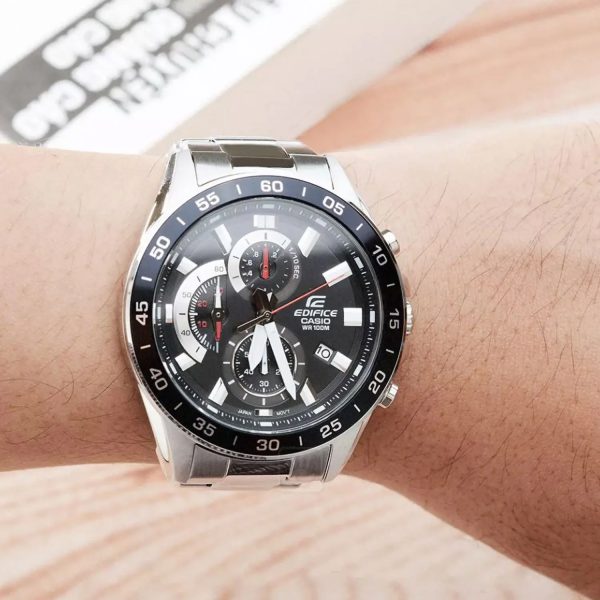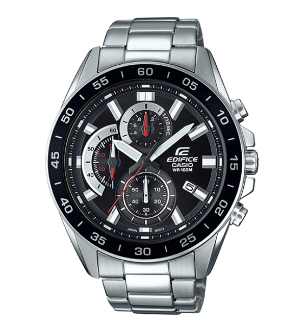 ویژگی‌های اختصاصی ساعت کاسیو ادیفایس مدل EFV-550D-1A کرنومتر 1/10 ثانیه ظرفیت اندازه‌گیری: 59’59.9 اینچ حالت‌های اندازه‌گیری: زمان سپری شده / زمان تقسیم / زمان‌های مکان اول تا دوم | زمان‌سنجی منظم: آنالوگ: 3 عقربه (ساعت / دقیقه / ثانیه) 3شماره‌گیری (کرنومتر 1/10 ثانیه / کرنومتر دقیقه / کرنومتر ثانیه) | نمایش تاریخ | تقریبا عمر باتری: 3سال در SR920SW