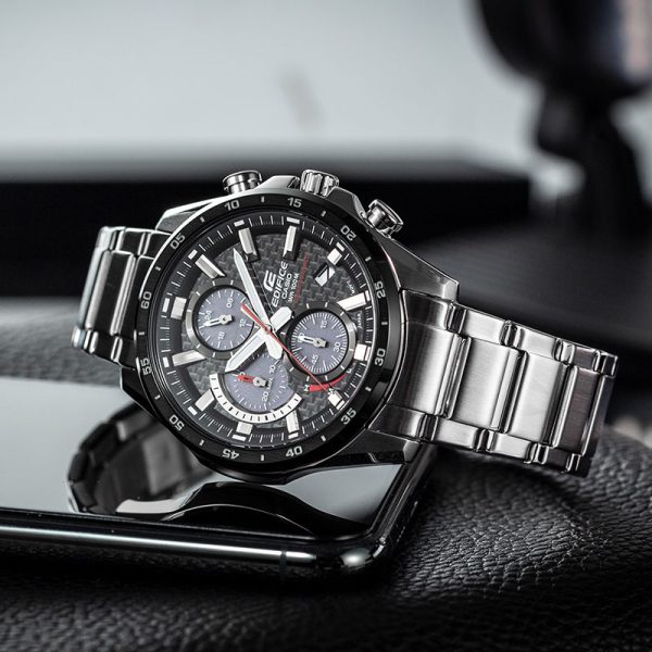ویژگیهای اختصاصی ساعت کاسیو ادیفایس مدل EQS-900DB-1AV کرنوگراف | کرنومتر 1 ثانیه ظرفیت اندازهگیری: 29’59 حالتهای اندازهگیری: زمان سپریشده، زمان تقسیم، زمانهای مکان 1-2 | زمانسنجی منظم: آنالوگ: 3عقربه (ساعت / دقیقه / ثانیه) / 3 شمارهگیری (24 ساعت / کرنومتر دقیقه / کرنومتر ثانیه) | نمایش تاریخ | زمان کارکرد از شارژ کامل تا توقف عقربهها: تقریبا 5 ماه | نشانگر سطح باتری | هشدار باتری کم
