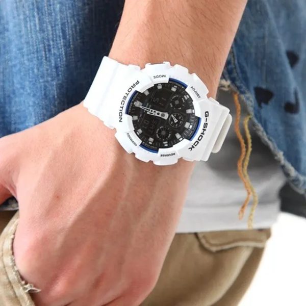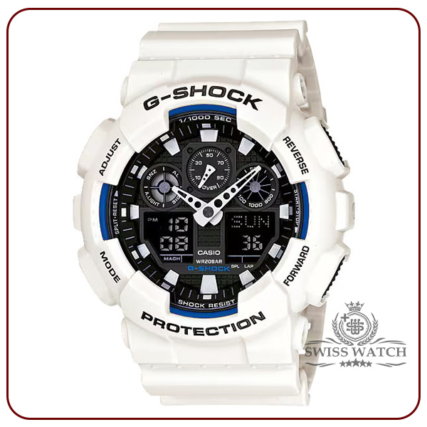 ساعت کاسیو جی شاک مدل GA-100B-7A مناسب ورزشهای سنگین | زمان جهانی 29 منطقه زمانی (48 شهر + ساعت جهانی هماهنگ)، روشن/خاموش تابستان، تعویض شهر خانه/زمان جهانی | کرنومتر 1/1000 ثانیه ظرفیت اندازهگیری: 99:59’59.999 اینچ حالتهای اندازهگیری: زمان سپری شده / زمان دور / زمان تقسیم سایر موارد: سرعت (0 تا 1998 واحد در ساعت) / ورودی فاصله (0.0 تا 99.9) نشانگر ماخ (سرعت) بیش از 1225 واحد در ساعت) | تایمر شمارش معکوس واحد اندازه گیری: 1 ثانیه محدوده شمارش معکوس: 24 ساعت محدوده تنظیم زمان شروع شمارش معکوس: 1 دقیقه تا 24 ساعت (افزایش 1 دقیقه و افزایش 1 ساعت) موارد دیگر: تکرار خودکار | 5 آلارم روزانه (با 1 زنگ چرت زدن) | سیگنال ساعت ساعتی | چراغ LED سوئیچ نور خودکار، مدت زمان روشنایی قابل انتخاب (1.5 ثانیه یا 3 ثانیه) پس درخشش / LED: کهربایی | تقویم خودکار کامل (تا سال 2099) | فرمت 12/24 ساعته | زمانسنجی منظم: آنالوگ: 2 عقربه (ساعت / دقیقه (حرکت عقربه هر 20 ثانیه)) 1 شمارهگیری (سرعت) دیجیتال: ساعت / دقیقه / ثانیه / بعد از ظهر / ماه / تاریخ / روز | تقریبا عمر باتری: 2 سال در CR1220