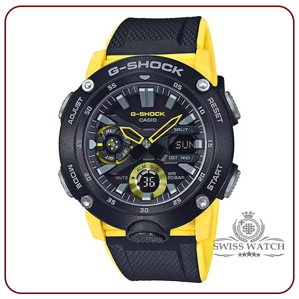 ویژگیهای اختصاصی ساعت کاسیو جی شاک مدل GA-2000-1A9DR زمان جهانی 31منطقه زمانی (48شهر + ساعت جهانی هماهنگ) / روشن/خاموش تابستان | کرونومتر 1/100 ثانیه ظرفیت اندازهگیری: 00’00”00~59’59”99 (برای 60دقیقه اول) 1:00’00~23:59’59 (بعد از 60دقیقه) واحد اندازهگیری: 1/ 100ثانیه (برای 60دقیقه اول) 1ثانیه (پس از 60دقیقه) حالتهای اندازهگیری: زمان سپری شده / زمان تقسیم / زمانهای رتبه اول تا دوم | 5 آلارم روزانه | تایمر شمارش معکوس واحد اندازهگیری: 1ثانیه محدوده شمارش معکوس: 24 ساعت محدوده تنظیم زمان شروع شمارش معکوس: 1ثانیه تا 24ساعت (افزایش 1ثانیه / افزایش 1دقیقه و افزایش 1ساعته) | نور LED دوتایی برای صورت (سوپر روشنایی / مدت زمان روشنایی قابل انتخاب (1.5ثانیه یا 3ثانیه)، نور پسزمینه LED برای صفحه نمایش دیجیتال (سوپر روشنایی / مدت زمان روشنایی قابل انتخاب (1.5 ثانیه یا 3 ثانیه) پسدرخشش) LED: سفید | تقویم خودکار کامل (تا سال 2099) | فرمت 12/24 ساعته | قابلیت تغییر عقربه (عقربهها از مسیر خارج میشوند تا دیدی بدون مانع از محتویات نمایشگر دیجیتال ارائه دهند.) | زمانسنجی منظم: آنالوگ: 2 عقربه (ساعت / دقیقه (هر 20 ثانیه حرکت عقربه)) 1 شمارهگیری (روز) دیجیتال: ساعت / دقیقه / ثانیه / بعدازظهر / ماه / تاریخ | تقریبا عمر باتری: 3 سال در SR726W X 2