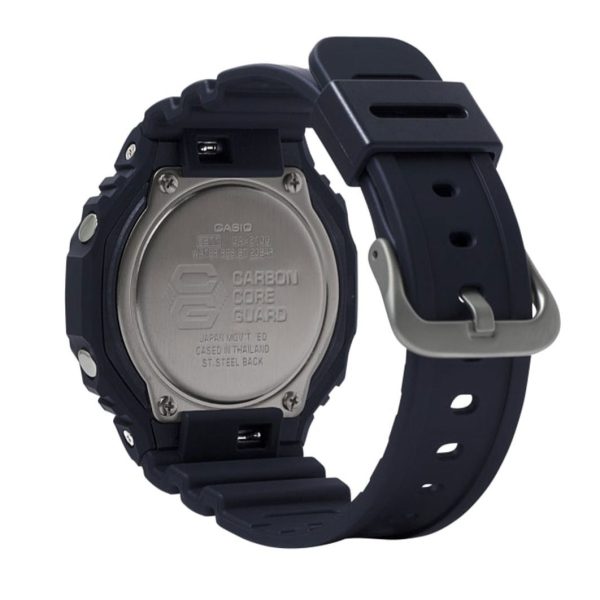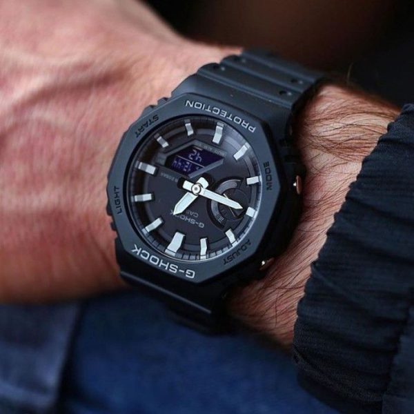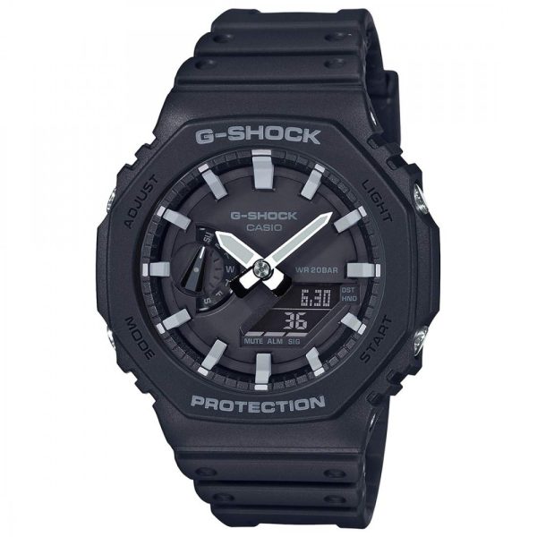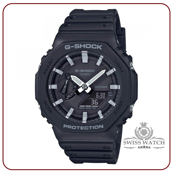 ویژگیهای اختصاصی ساعت کاسیو جی شاک مدل GA-2100-1A باریک و راحت برای پوشیدن | زمان جهانی 31منطقه زمانی (48شهر + ساعت جهانی هماهنگ) / روشن/خاموش تابستان | کرونومتر 1/100ثانیه ظرفیت اندازهگیری: 00’00”00~59’59”99 (برای 60 دقیقه اول) 1:00’00~23:59’59 (بعد از 60 دقیقه) واحد اندازهگیری: 1/100ثانیه (برای 60 دقیقه اول) 1ثانیه (پس از 60دقیقه) حالتهای اندازهگیری: زمان سپری شده / زمان تقسیم | تایمر شمارش معکوس واحد اندازهگیری: 1 ثانیه محدوده شمارش معکوس: 24ساعت محدوده تنظیم زمان شروع شمارش معکوس: 1دقیقه تا 24ساعت (افزایش 1دقیقه و افزایش 1 ساعت) | 5 آلارم روزانه | سیگنال ساعت ساعتی | نور LED دوتایی برای صورت (سوپر روشنایی/ مدت زمان روشنایی قابل انتخاب (1.5 ثانیه یا 3 ثانیه) / نور پسزمینه LED برای صفحه نمایش دیجیتال (سوپر روشنایی / مدت زمان روشنایی قابل انتخاب (1.5 ثانیه یا 3 ثانیه) پس درخشش) / LED: سفید | تقویم خودکار کامل (تا سال 2099) | فرمت 12/24 ساعته | قابلیت تغییر عقربه (عقربهها از مسیر خارج میشوند تا دیدی بدون مانع از محتویات نمایشگر دیجیتال ارائه دهند.) | زمانسنجی منظم: آنالوگ: 2 عقربه (ساعت / دقیقه (هر 20 ثانیه حرکت عقربه)) / 1 شمارهگیری (روز) دیجیتال: ساعت / دقیقه / ثانیه / بعدازظهر / ماه / تاریخ | تقریبا عمر باتری: 3 سال در SR726W X 2