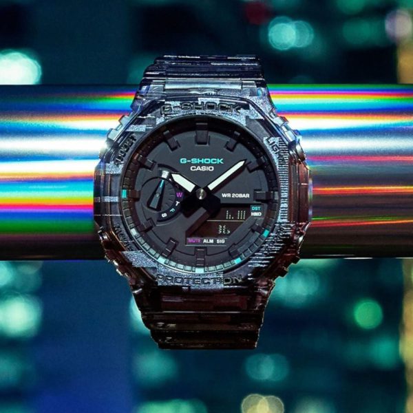 ویژگیهای مدل GA-2100 مقاوم در برابر ضربه تایمر و 5 آلارم روزانه کرنوگراف 1/100 ثانیهای مقاومت 200 متری در برابر آب