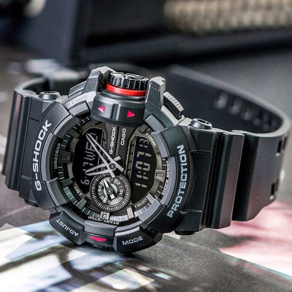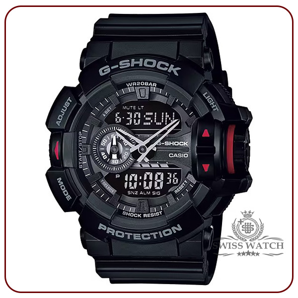 ویژگی‌های مدل GA-400 مقاوم در برابر ضربه تایمر و 5 آلارم روزانه کرنوگراف 1/100 ثانیه‌ای مقاومت 200 متری در برابر آب