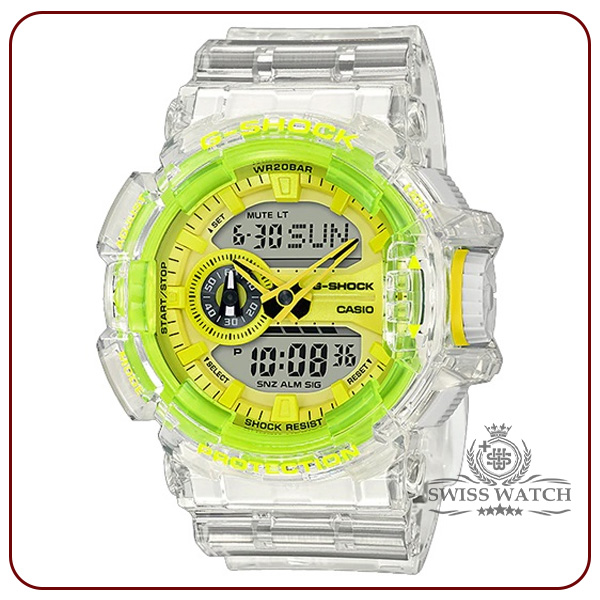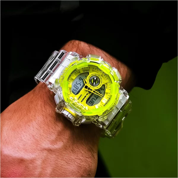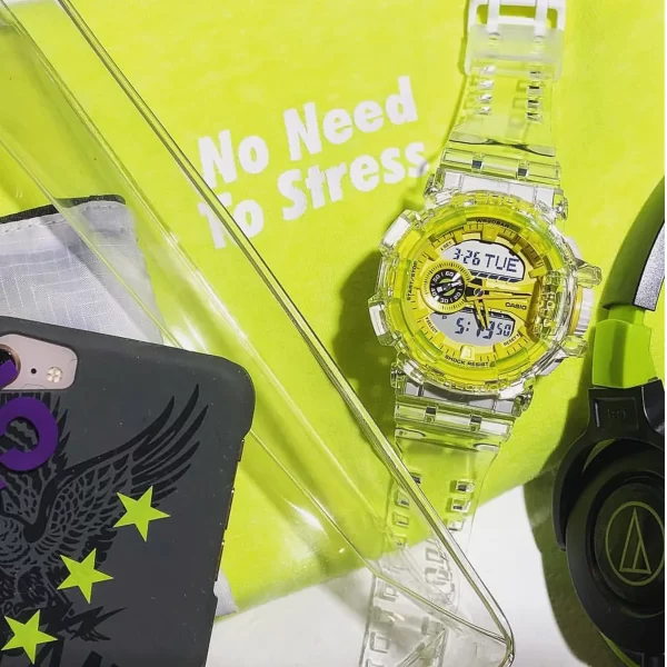 ویژگیهای مدل GA-400 مقاوم در برابر ضربه تایمر و 5 آلارم روزانه کرنوگراف 1/100 ثانیهای مقاومت 200 متری در برابر آب
