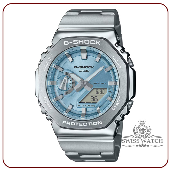 ویژگیهای اختصاصی ساعت کاسیو جی شاک مدل GM-2110D-2A ساختار محافظ هسته کربن | زمان جهانی 31منطقه زمانی (48شهر + ساعت جهانی هماهنگ) / روشن/خاموش تابستان | کرونومتر 1/100ثانیه ظرفیت اندازهگیری: 00’00”00~59’59”99 (برای 60دقیقه اول) 1:00’00~23:59’59 (بعد از 60دقیقه) واحد اندازهگیری: 1/100ثانیه (برای 60دقیقه اول) 1ثانیه (پس از 60دقیقه) حالتهای اندازهگیری: زمان سپری شده / زمان تقسیم / زمانهای رتبه اول تا دوم | 5 آلارم روزانه | تایمر شمارش معکوس واحد اندازهگیری: 1ثانیه محدوده شمارش معکوس: 24 ساعت محدوده تنظیم زمان شروع شمارش معکوس: 1ثانیه تا 24ساعت (افزایش 1ثانیه / افزایش 1دقیقه و افزایش 1ساعته) | نور LED دوتایی برای صورت (سوپر روشنایی / مدت زمان روشنایی قابل انتخاب (1.5ثانیه یا 3ثانیه)، نور پسزمینه LED برای صفحه نمایش دیجیتال (سوپر روشنایی / مدت زمان روشنایی قابل انتخاب (1.5 ثانیه یا 3 ثانیه) پسدرخشش) LED: سفید | تقویم خودکار کامل (تا سال 2099) | فرمت 12/24 ساعته | قابلیت تغییر عقربه (عقربهها از مسیر خارج میشوند تا دیدی بدون مانع از محتویات نمایشگر دیجیتال ارائه دهند.) | زمانسنجی منظم: آنالوگ: 2عقربه (ساعت / دقیقه (هر 20 ثانیه حرکت عقربه)) 1شمارهگیری (روز) دیجیتال: ساعت / دقیقه / ثانیه / بعدازظهر / ماه / تاریخ | تقریبا عمر باتری: 3سال در SR726W X 2