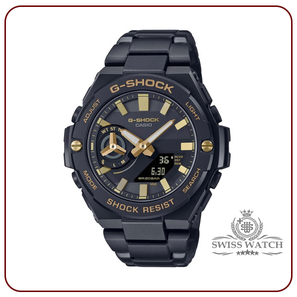ساعت CASIO G-SHOCK GST-B500BD-1A9DR یکی از مدلهای برتر سری G-STEEL است که با طراحی لوکس، فناوری پیشرفته و مقاومت بالا، توجه بسیاری از علاقهمندان به ساعتهای مقاوم و هوشمند را جلب کرده است. این مدل، ترکیبی از استیل ضد زنگ مشکی مات و جزئیات طلایی را ارائه میدهد که ظاهری مدرن و خاص به آن بخشیده است.