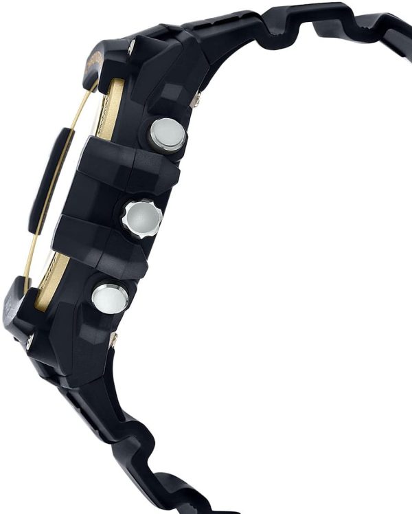 🔹 بدنه و بند رزینی مشکی با ترکیب رنگ طلایی برای ظاهری خاص و جذاب