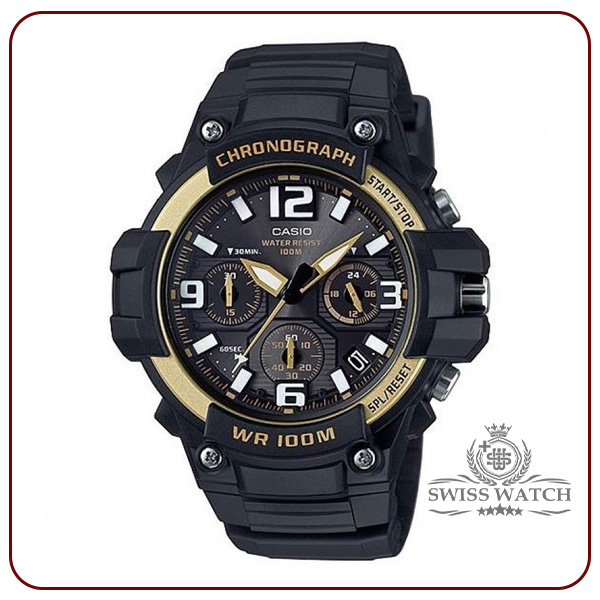 ساعت کاسیو مدل MCW-100H-9A2 یک مدل آنالوگ مقاوم و اسپرت با بدنه و بند رزینی مشکی، صفحه نمایش بزرگ، کرونومتر دقیق، نمایشگر تاریخ و مقاومت در برابر آب تا 100 متر است. طراحی جذاب و ترکیب رنگ مشکی و طلایی، آن را به گزینه‌ای فوق‌العاده برای استفاده روزمره و ورزشی تبدیل کرده است. همین حالا از گالری سوئیس واچ خریداری کنید!