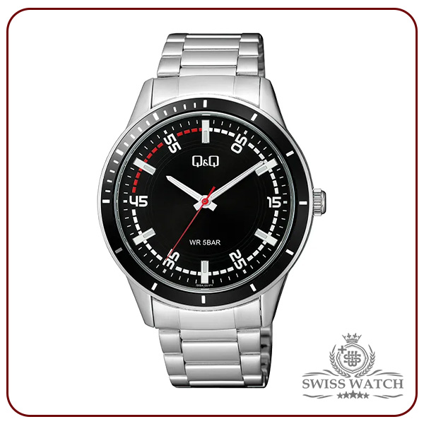 اگر بهدنبال یک ساعت مردانه خوشقیمت، مقاوم و جذاب برای استفاده روزانه یا استایل نیمهاسپرت هستید، Q&Q Q09A-001PY یکی از بهترین انتخابها در این رده است. این مدل با قاب و بند تماماستیل نقرهای طراحی شده و صفحه مشکی با جزئیات سفید و قرمز ظاهری مدرن، چشمگیر و کاملاً مردانه دارد. وجود عقربهها و ایندکسهای شبتاب باعث میشود حتی در نور کم نیز خوانایی بالایی داشته باشد. همچنین ثانیهشمار قرمز حس اسپرت، انرژی و حرکت را به طراحی اضافه میکند.