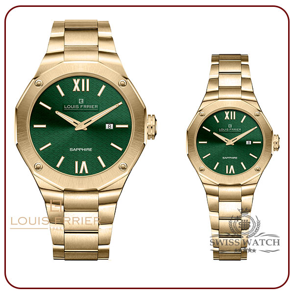 ست ساعت زنانه و مردانه لوئیس فریر مدل LF 9553-135-145 با طراحی کلاسیک و لوکس، استفاده از مواد با کیفیت و موتور دقیق کوارتز سوئیسی، انتخابی ایدهآل برای زوجهایی است که به دنبال ساعتی با دوام و زیبا هستند. ترکیب رنگ سبز صفحه با قاب و بند طلایی، ظاهری منحصر به فرد و خاص به این ساعت بخشیده است.
